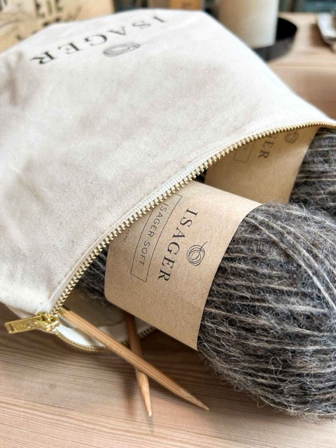 Kompakt og rummelige Projekttaske fra Isager syet i kraftigt bomuldslærred og udstyret med lynlås. Tasken kan holder garn og strikkepinde godt på plads – perfekt at tage med på café, i sommerhuset eller når du er på farten.