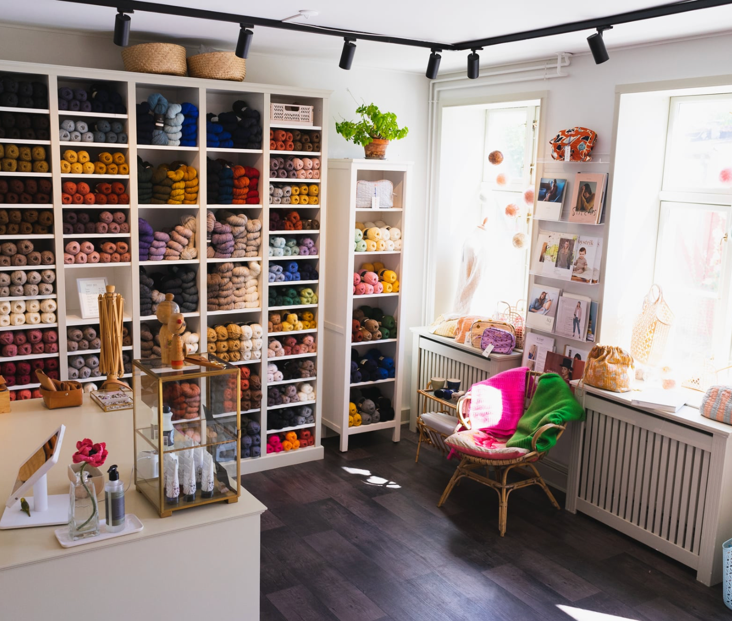 Butikkens størrelse gør, at det der ligger på hylderne er nøje udvalgt, både hvad angår farver såvel som kvaliteter.